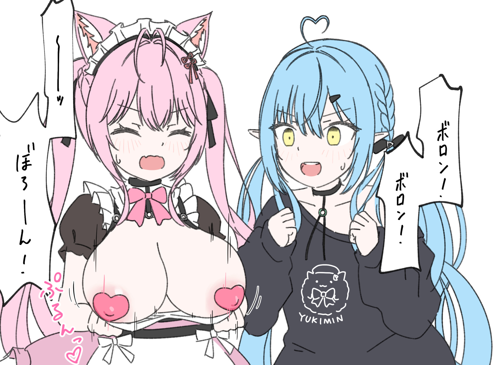 >>109148442ボロン is an onomatopoeia for something being popped out, so Lamy is encouraging Koyo to pop her tits out, which she does.