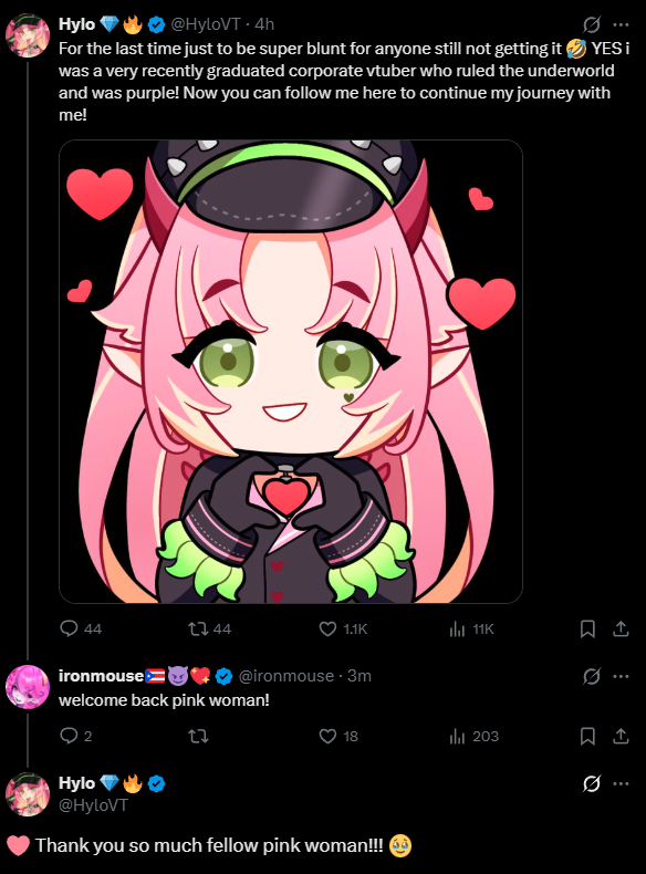 GeegaWelcome to /xvsj+/! A thread to discuss vtubers who were once associated with a hot pink company.Geega/xvsj+/ includes:Amalee - https://www.twitch.tv/Amalee Froot - https://www.twitch.tv/apricot Geega - https://www.twitch.tv/geega Haruka - https://www.twitch.tv/harukakaribu Henya - https://www.twitch.tv/henyathegenius Hime - https://www.twitch.tv/hajime Kson - https://www.twitch.tv/ksonsouchou Kuro - https://www.twitch.tv/k9kuro Mata - https://www.twitch.tv/matarakan Mel - https://www.twitch.tv/projektmelody Michi - https://www.twitch.tv/michimochievee Momo - https://www.twitch.tv/momo Mouse - https://www.twitch.tv/ironmouse Nazuna - https://www.twitch.tv/amemiyanazuna Nyan - https://www.twitch.tv/nyanners Silver - https://www.twitch.tv/silvervale Vei - https://www.twitch.tv/vei Zen - https://www.twitch.tv/zentreya NOVAHestia - https://www.twitch.tv/hestiahappiness Hotaru - https://www.twitch.tv/akatsukidhotaru Nagi - https://www.twitch.tv/NagIsekaied Peke - https://www.twitch.tv/pekeispeak The BeastiezBeri - https://www.twitch.tv/beribugKairyu - https://www.twitch.tv/kairyucrocodilePia - https://www.twitch.tv/piapiufoTori - https://www.twitch.tv/toriorianeDensetsu.EXEFeebee - https://www.youtube.com/@feebeechanchibiMint - https://www.youtube.com/@mintfantomeVicky - https://www.youtube.com/@vickyroman_idolRelated:/999/ + /総長/ + /nova/ + /voms/ for Japanese talents once associated with a hot pink company/lig/ and /big/ for more generalized + and friends discussionPrevious thread: >>108971099