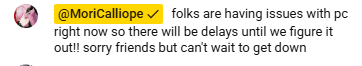 >both collabs are late because of tech issues