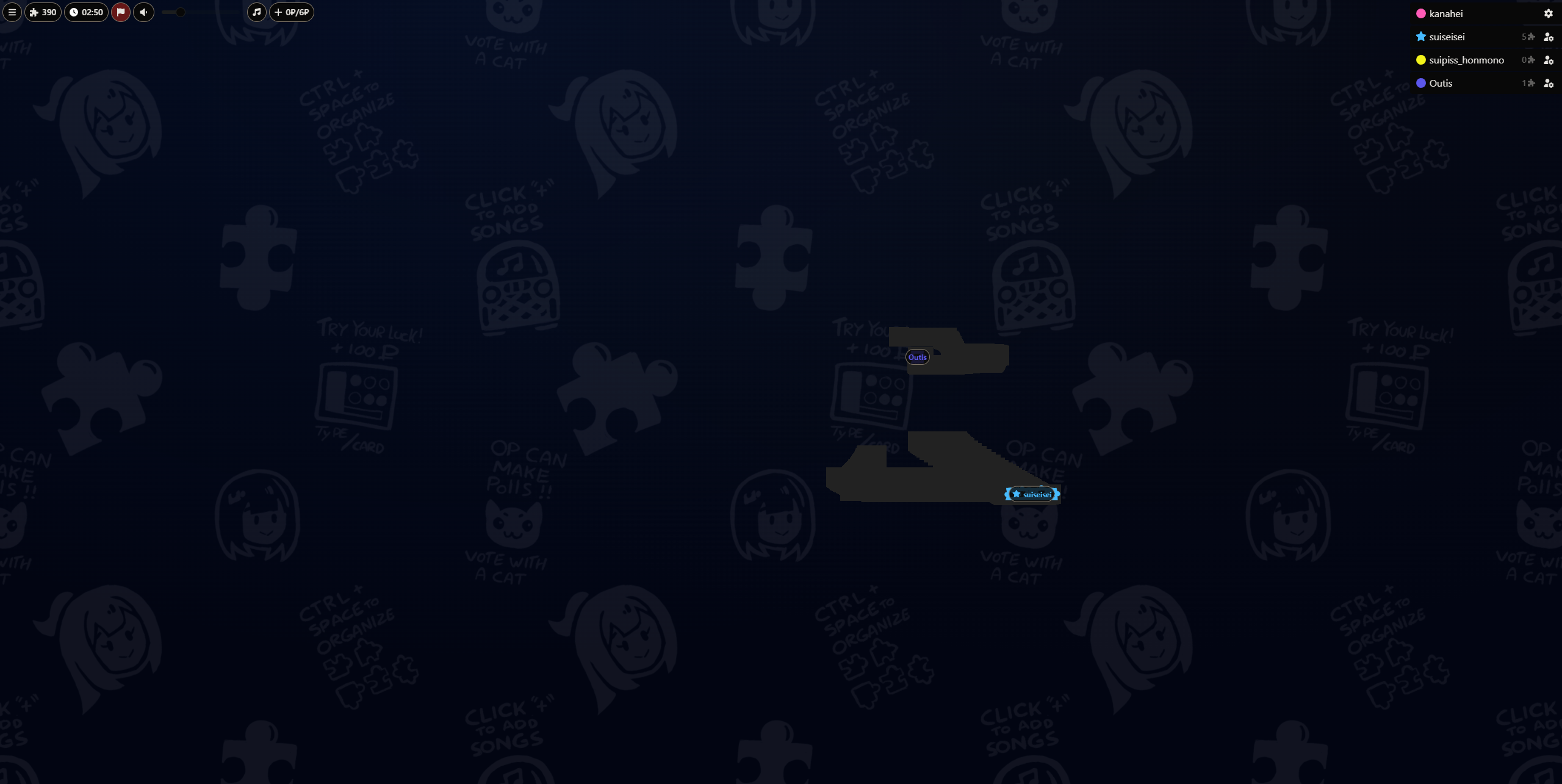 >>108997694First time hosting a suitashajig I'm out of ideas and was feeling nostalgic soz.https://jiggie.fun/KgtShu390 pieces, mystery, edges on separate pile and jukebox enabled.