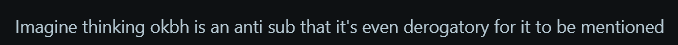 >>109000083>imagine thinking okbh is an anti subyou dont need to imagine that, that's exactly what they are