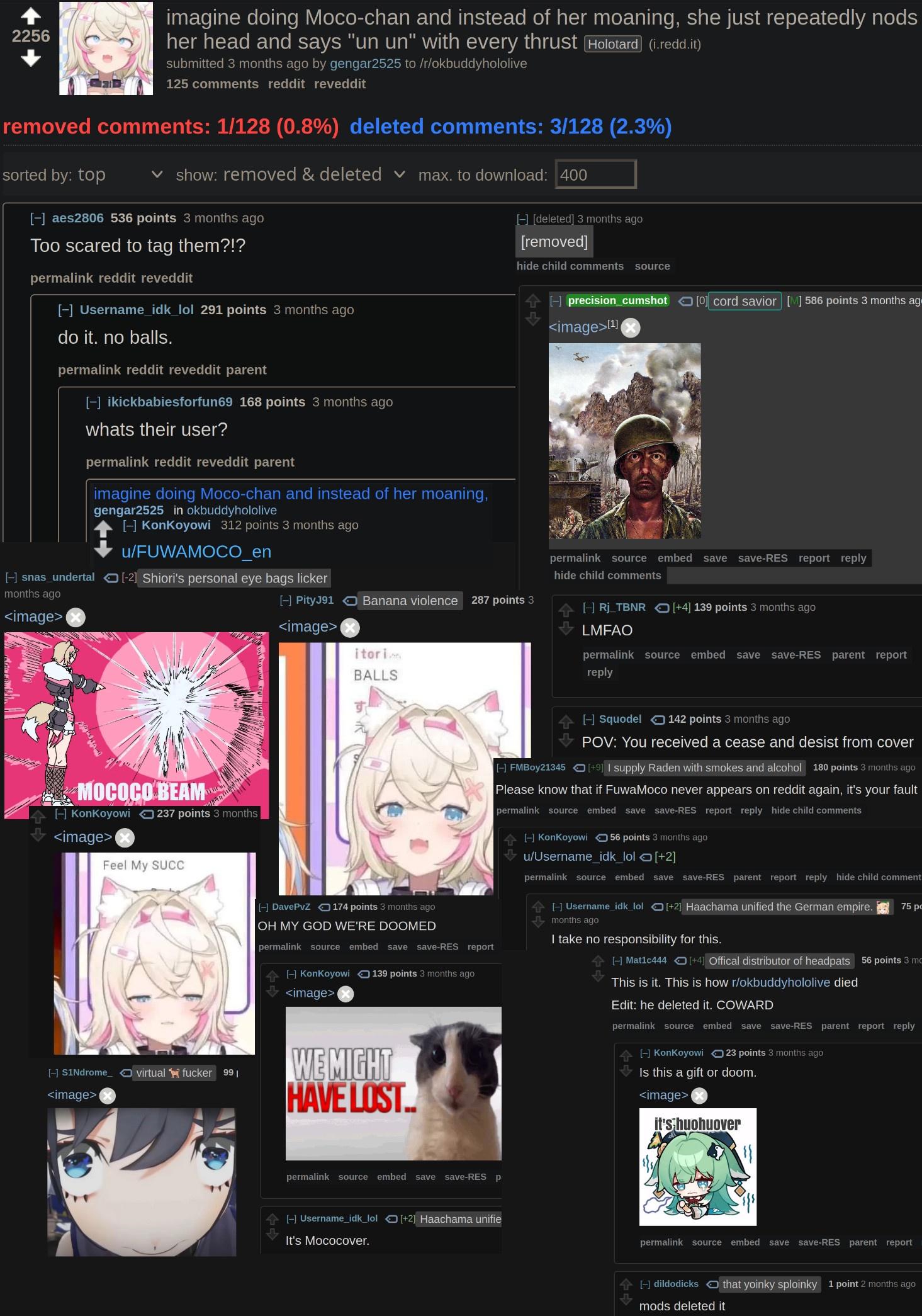 >>108999477i don't think people really use catalog thread anymore, i tried the whole catalog thing and created like 4 bait threads in a week, it died down after the first hour with 20-30 posts, and after that it just endless loops of some schizo bumping the thread every time it hit page 10 with the highest being 100+ posts, it happens to all 4 of the threads. My conclusion is i think the bait threads culture died down with the board activity dying and the lack of tourists. Most bait threads now barely survive with some retards responding and the OP himself spamming in it. Methinks we become more of a /vtg/ now after the hack, sadly so schizos are more focused on split now. Bait threads hitting the top spot of 4stats is a rare sight now, few years ago even holoID bait threads like Moona were able to hit like 800+ posts with speed that compares with top threads, we're clearly long past that peak.