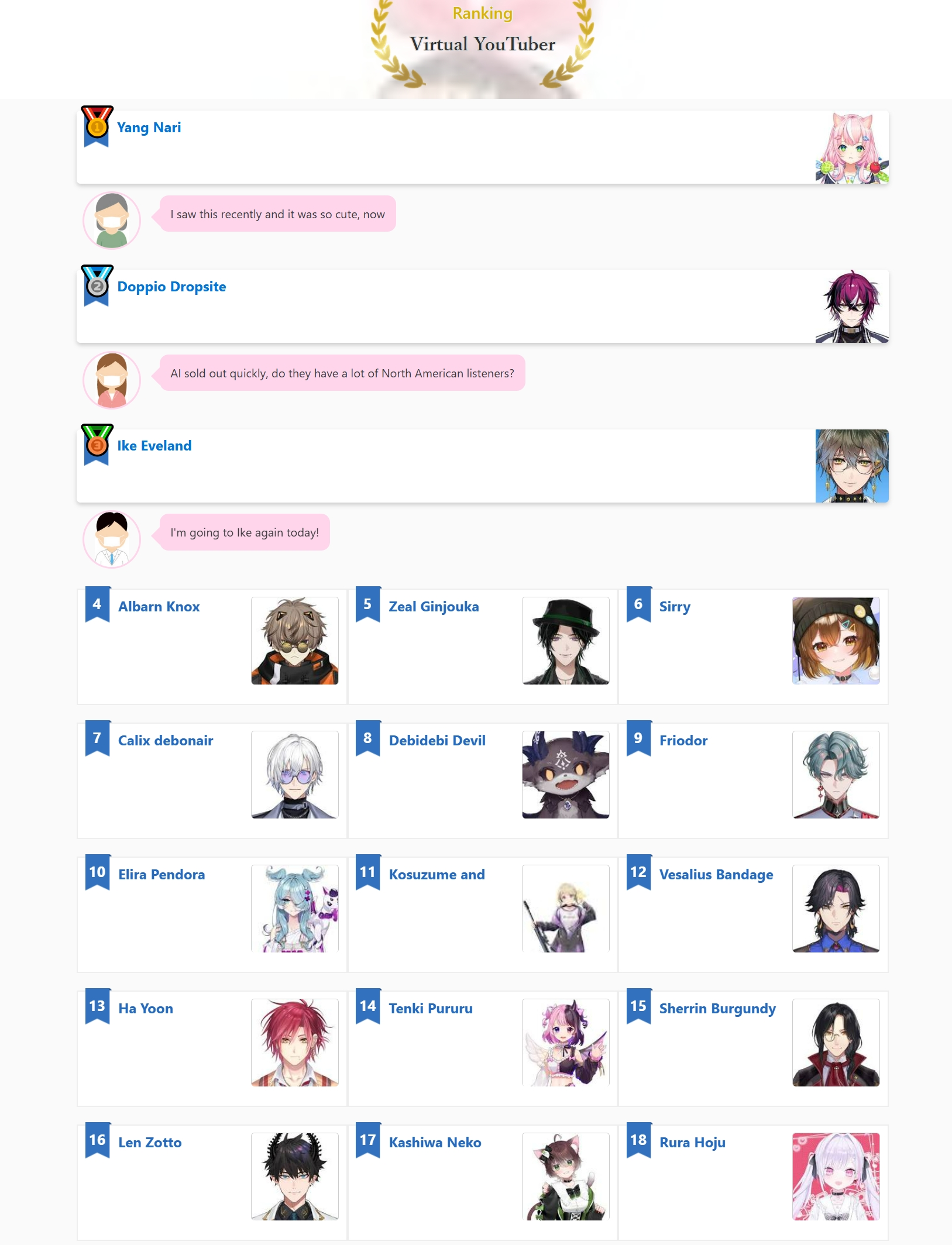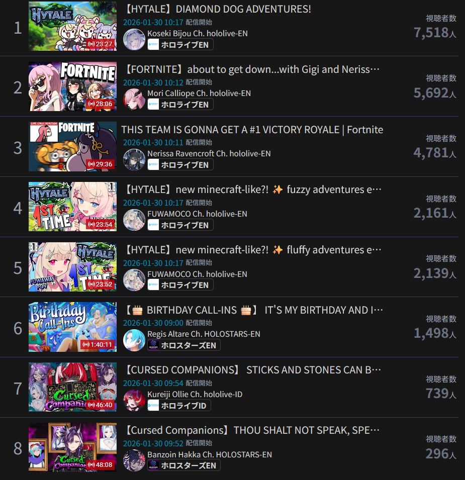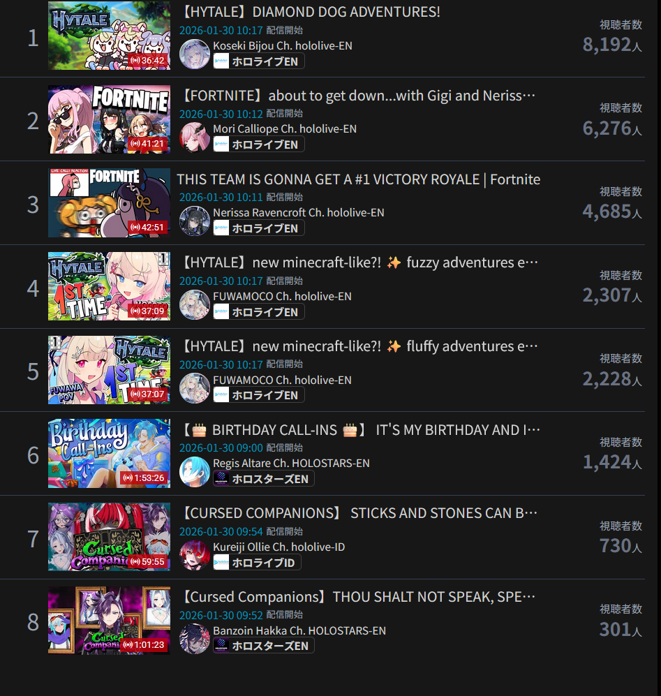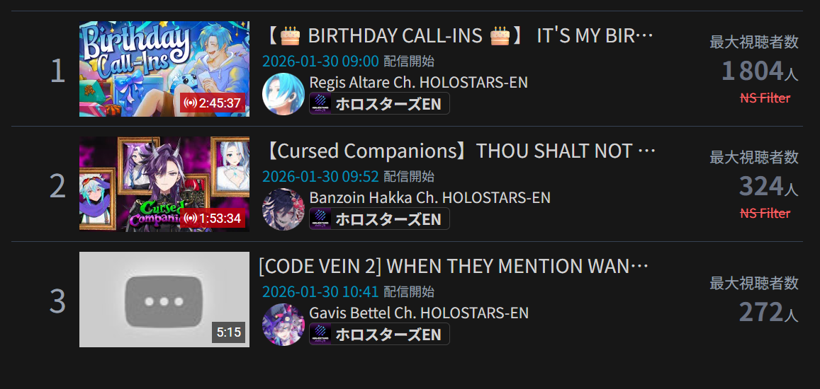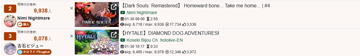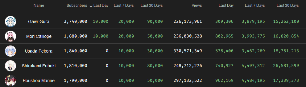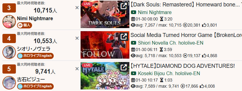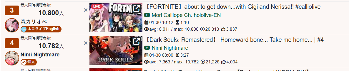 *GENERAL NUMBERFAG SITES*>https://playboard.co/en/>http://ikioi-ranking.com/>https://vrabi.net/>https://live-ranking.userlocal.jp/vtuber-rankingHololive sites>https://www.hololyzer.net/youtube/index.html>https://trackholo.live/en/>https://holo-spotify-stats.jirikunes.eu/Twitch>https://sullygnome.com/>https://twitchtracker.com/>https://stats.roki.sh/>https://streamscharts.com/