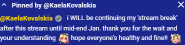 Speaking of Kaela — wasn't she supposed to come back to streaming at the end of January?