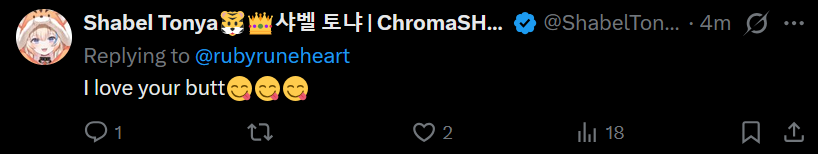 >>109043935>retweets increasingly lewd art>commissions lewd art of herself>pulls up her skirt to reveal panties on bodycam streams>plays with her tits (clothes still on) on patreon exclusivesYou can tell she's getting into the mood during ASMR streams she's slowly pushing the limits