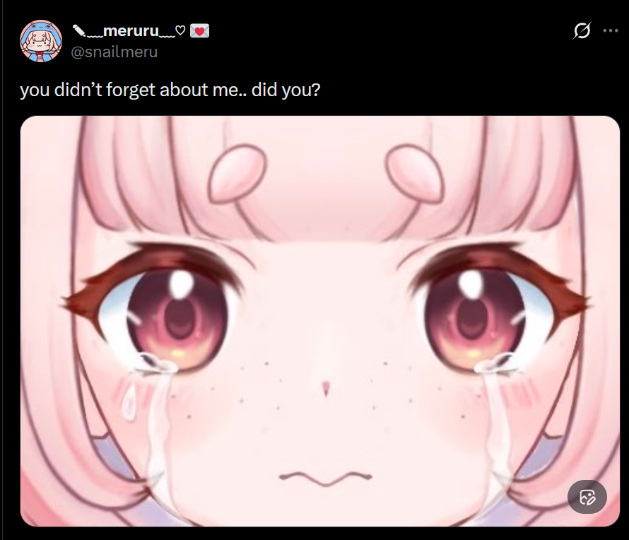 >>109042492I just saw it earlier.Wanna hug this lil demon and make her feel okay.It's understandable worrying about stuff like that.The whole "people get sad over an oshi disappearing, but when it's us we see multiple people disappear without a word and wonder why" is one of those huge struggles any small creator goes through.As a viewer you sometimes wonder if you should say why you are leaving, at the same time saying so might also make them feel so much worse.It's a horrible situation to be in. There's no real good answer there, other than trying to deal with it.There's been random people I've talked to over the years and who just randomly vanished, only for me to find out years later they had died, ended up in a jail cell because they went off the rails, or jailed for protests or some other shit.A lot of the time though, most times, it's just "we drifted apart".Keeping that in your head helps a lot. The "we drifted apart" helps you cope the most. It's hard not to think you did something wrong.It doesn't help unless you continue to grow as a creator, thinking "wow someone hates me" is bad, thinking "what could I do to find more fans? What do people I like do?" and take notes.But you always have to remember most people have completely neutral reasons for leaving.