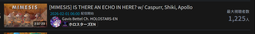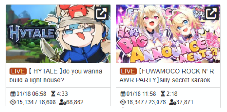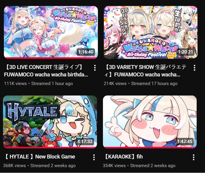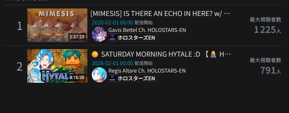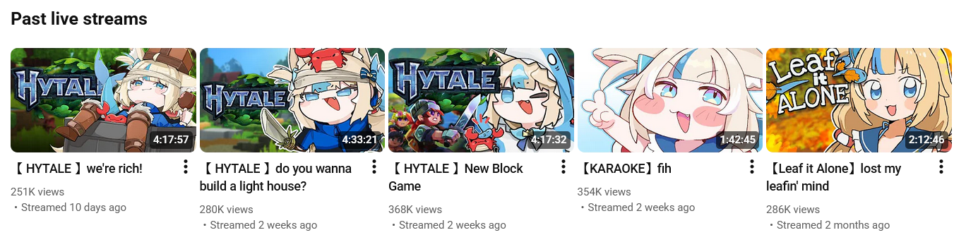>>109060996You know, hytale is surprisingly not very buff for ENTaking a look at vod counts (to try reduce bot impact), there are only 2 100k+ vods:The very first one (Takamori collab) and Biboo's 7 hour oneWhich was somewhat surprising to me because JP and Saba were getting relatively great numbers for hytale