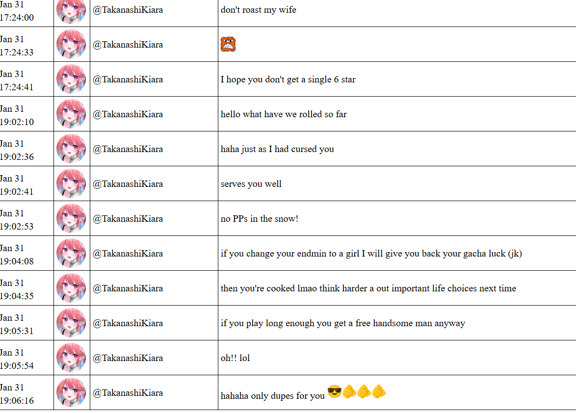 kiara has either showed up in chat or talked about every single holoen girl that played endfield except for biboo