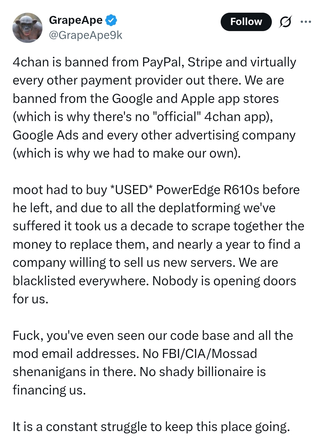 >we may be shitty people, but at least we don't get banned over it.