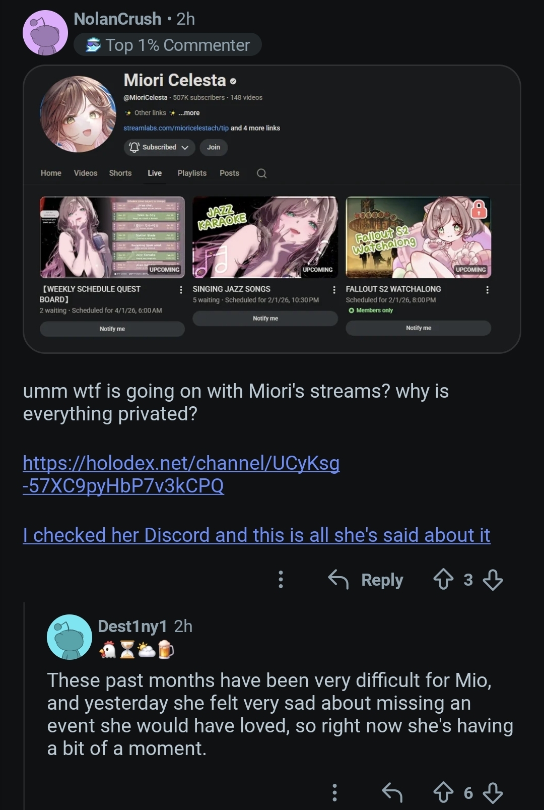 I said I basically dont even know what else she does. Karaoke, twitch, homocollabs, doesnt stream, thats it.