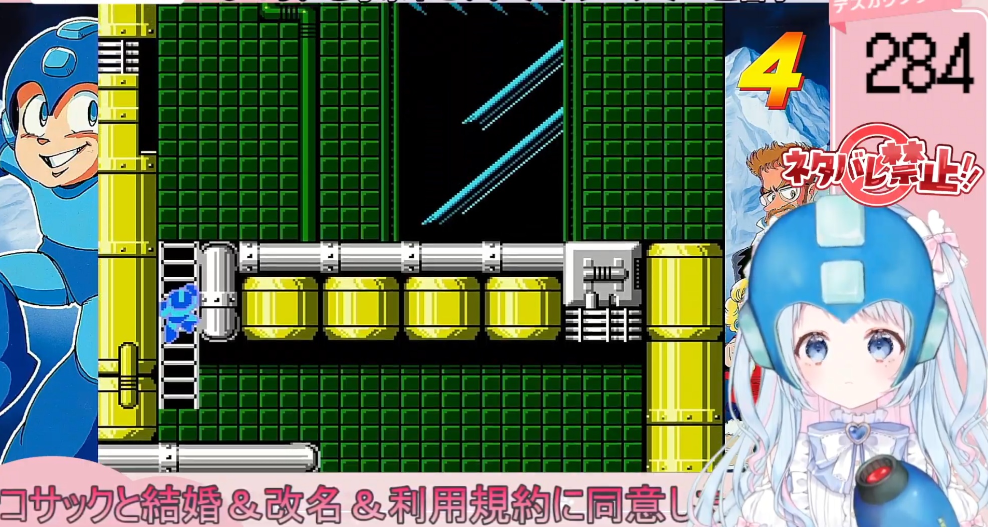 Tsumuji Mugi is playing Mega Man 4 and tracking game overs as she goes. 284https://www.youtube.com/watch?v=Pf1xFIKbmpc