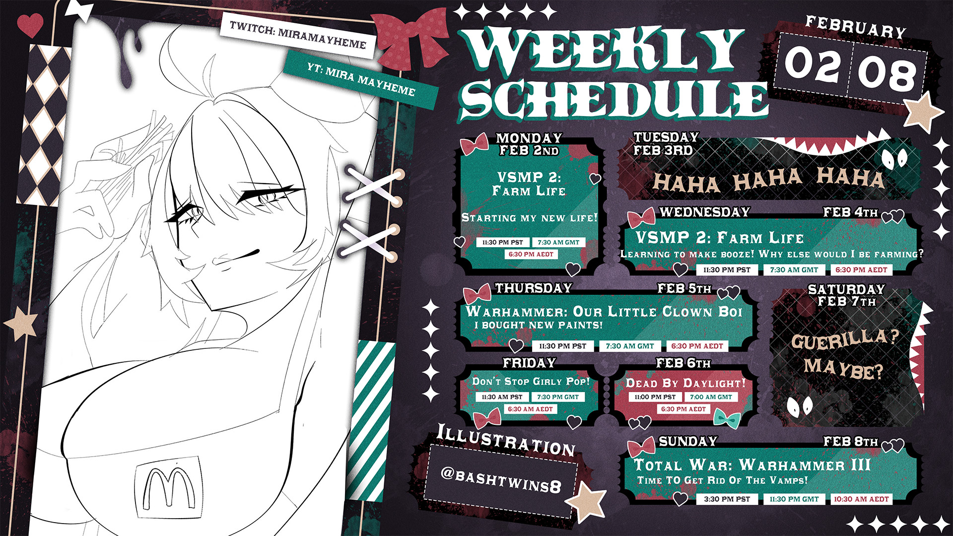>OMG SO EARLY! WHO IS SHE?! Testing out a new schedule for a few weeks now that I'm needed outside the circus a bit more. Thursday will have occasional morning streams. Let's do this!!!Mira's schedule (from discord)She's back to Yumi's timeslot