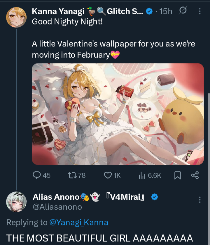 >>109084813I'd watch Alias and her alt collabing with each other. It'll be like that kancolle voice drama from Naobu where she voices 7 characters at once (kongou sisters & atago sisters).