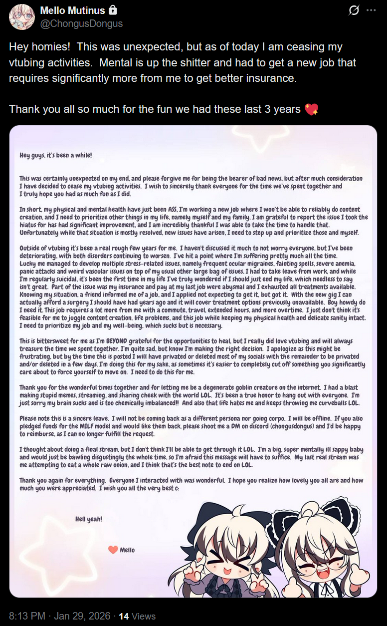 Large indie vtubers have more net fans, but they are outnumbered by 2views by the thousands. This is a thread for the VIP, regardless of what language they stream on.