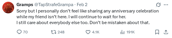 >>109096955difference is he made a post saying why he didn't make the tweet. Talking about why he could support it with everything happening.