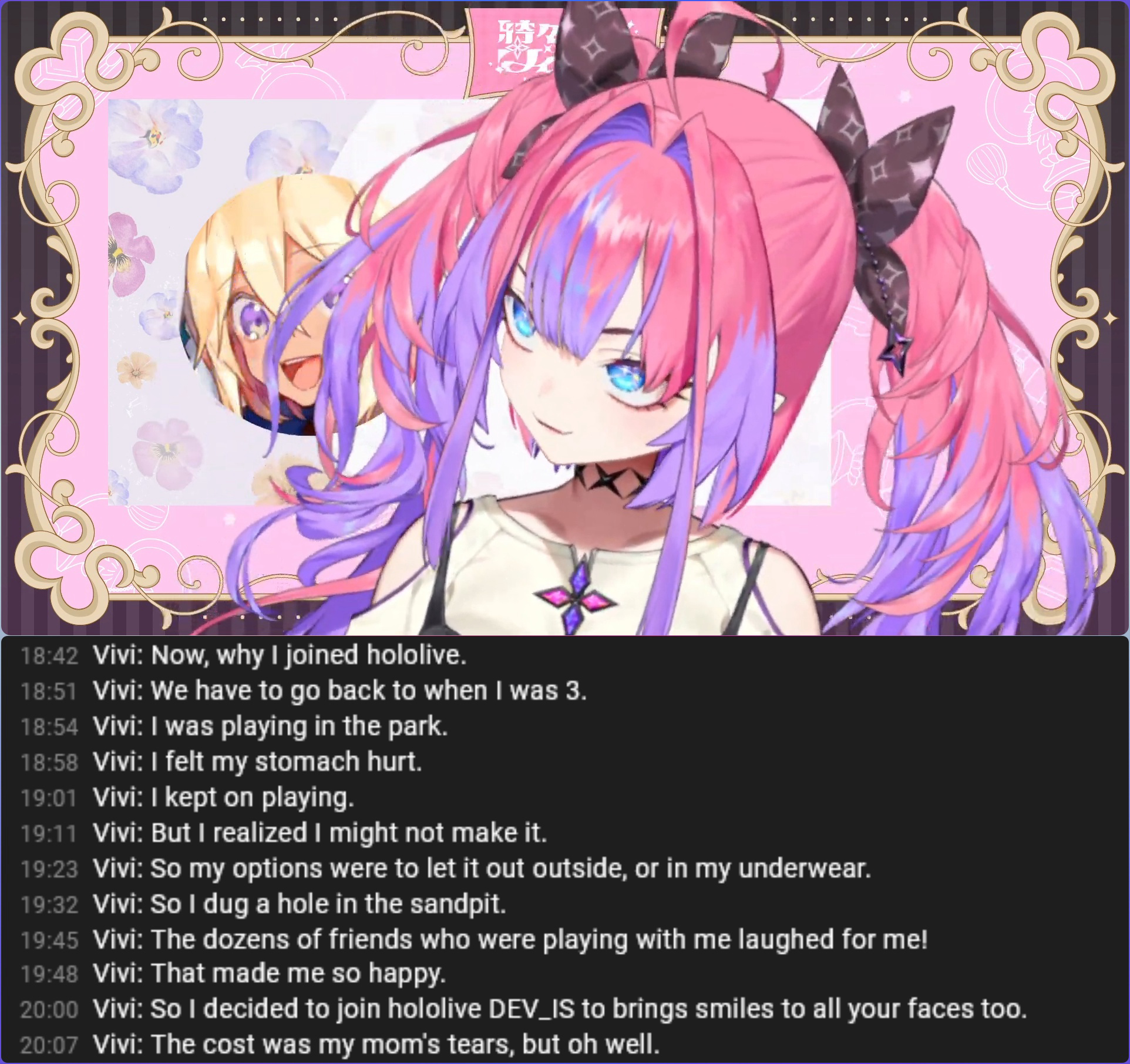 >>109096736Every holo has a gross poop story from their childhood. Most just won’t tell it like Vivi did.