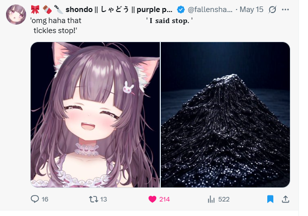 >who???If you aren't aware, Fallenshadow is the most hard-working schizo loli on the internet and enjoys the company of her husbands very much!! Please treat her well.>linksTwitch: https://www.twitch.tv/fallenshadow/videos?filter=archives&sort=timeASMR Youtube: https://www.youtube.com/@fallenshadow/videosVOD Youtube: https://www.youtube.com/@fallenshadowtwitch/videosClips Youtube: https://www.youtube.com/@fallenshadowclips/videosRibbon Cage: https://www.youtube.com/watch?v=teeodp3_eLAYou Are My Sunshine (Cover): https://www.youtube.com/watch?v=YLZjtosvBfUBreakcore Mix To Dissociate: https://www.youtube.com/watch?v=uYFrd7YmcacTwitter: https://x.com/fallenshadow_YT/with_repliesOtis Twitter: https://x.com/managerotis/with_repliesShondo Store: https://shondo.store/Schedule: Shadow Weekend (movies daily on discord)Please refresh yourselves on global and board rules before posting, you might be surprised~!Remember to ignore, report and hide shitposters. It's easier than you think!!!!!!Previous thread:
