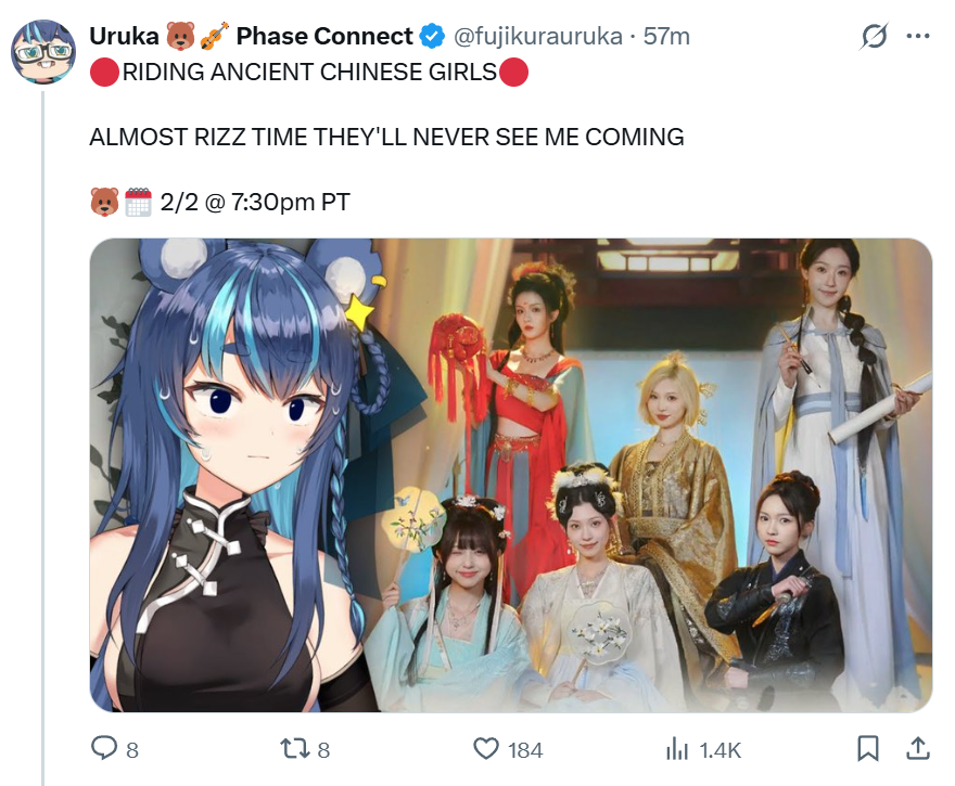 >>109098989Why does she never stream. Muyu too.