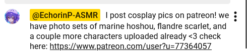 >>109100331pay and find outalternatively, dive in her twitter and find her cosplay alt where she posted some test pics
