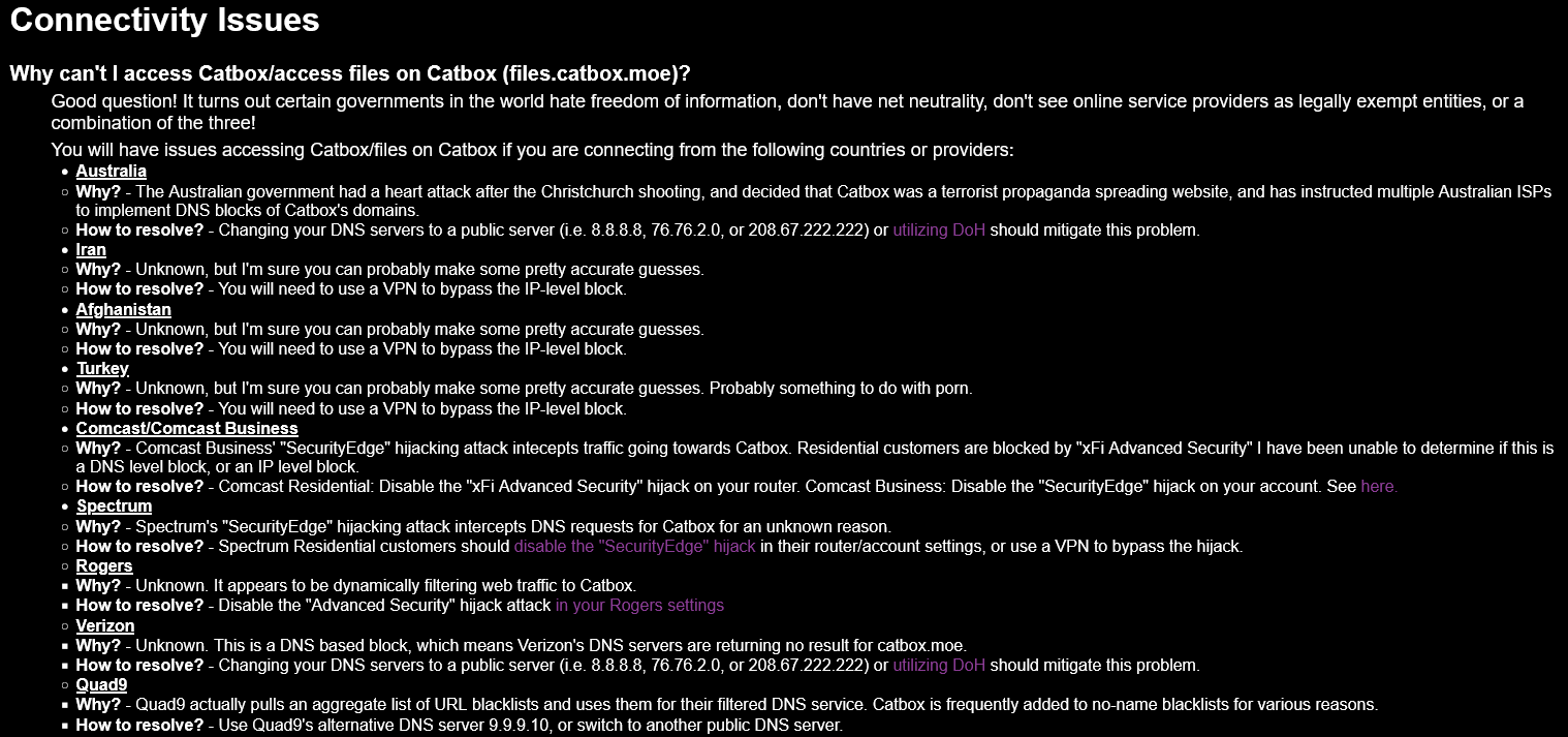 lol catbox IP banned me or my ISP fully blocked them, even after unfucking my DNS I cant get a connection at all