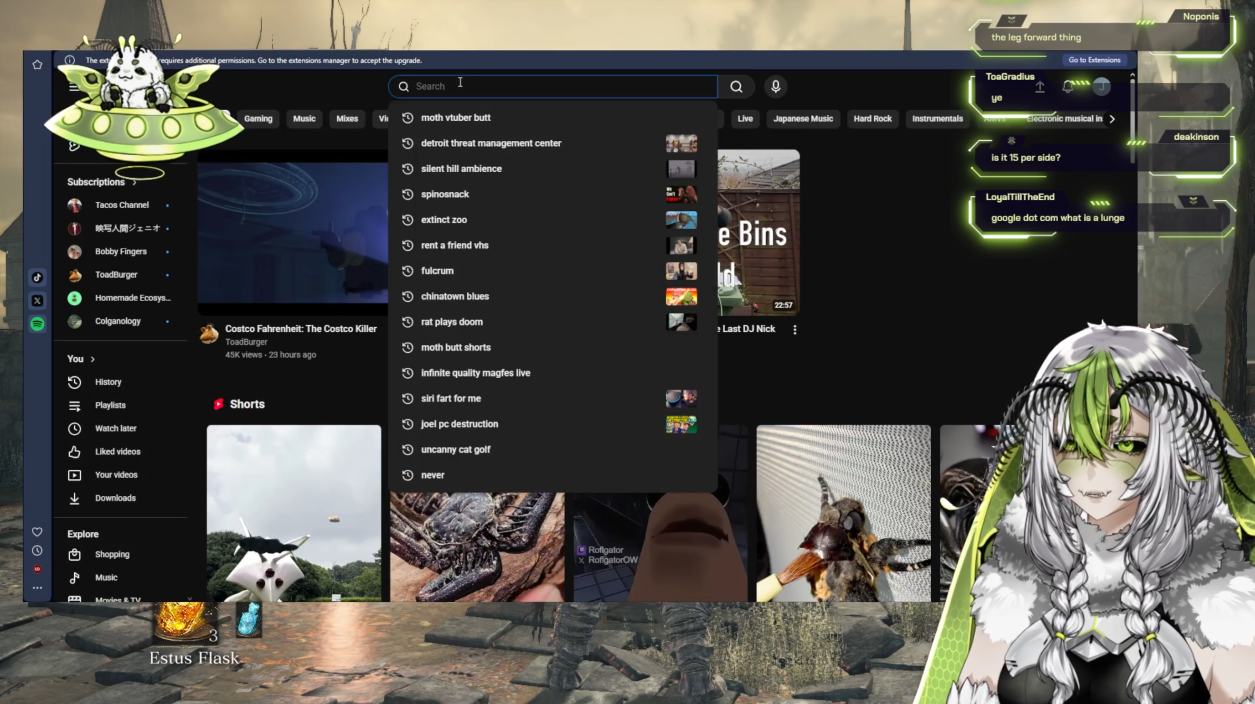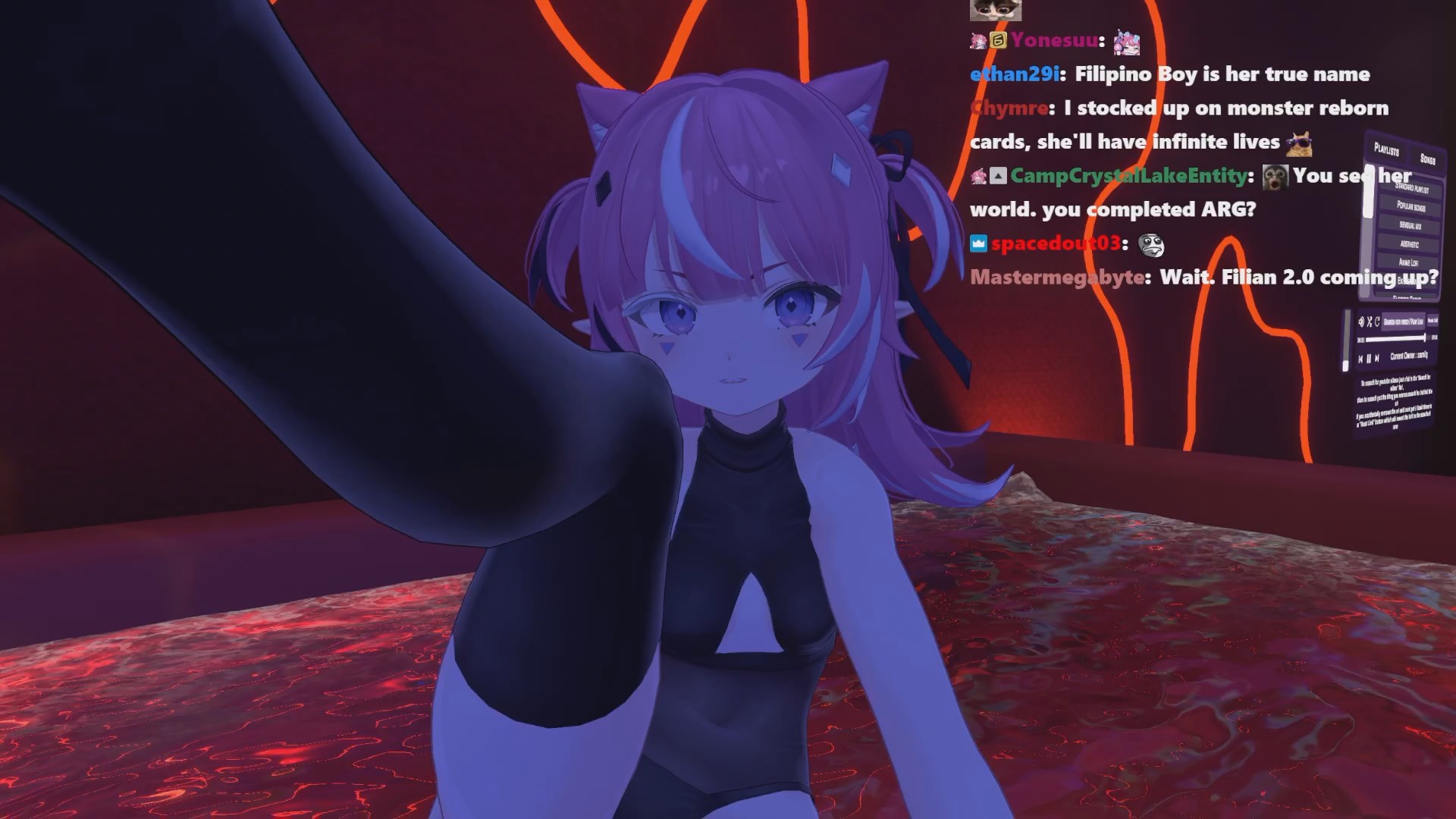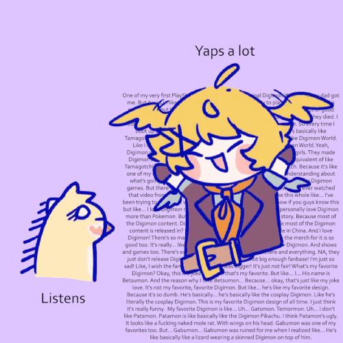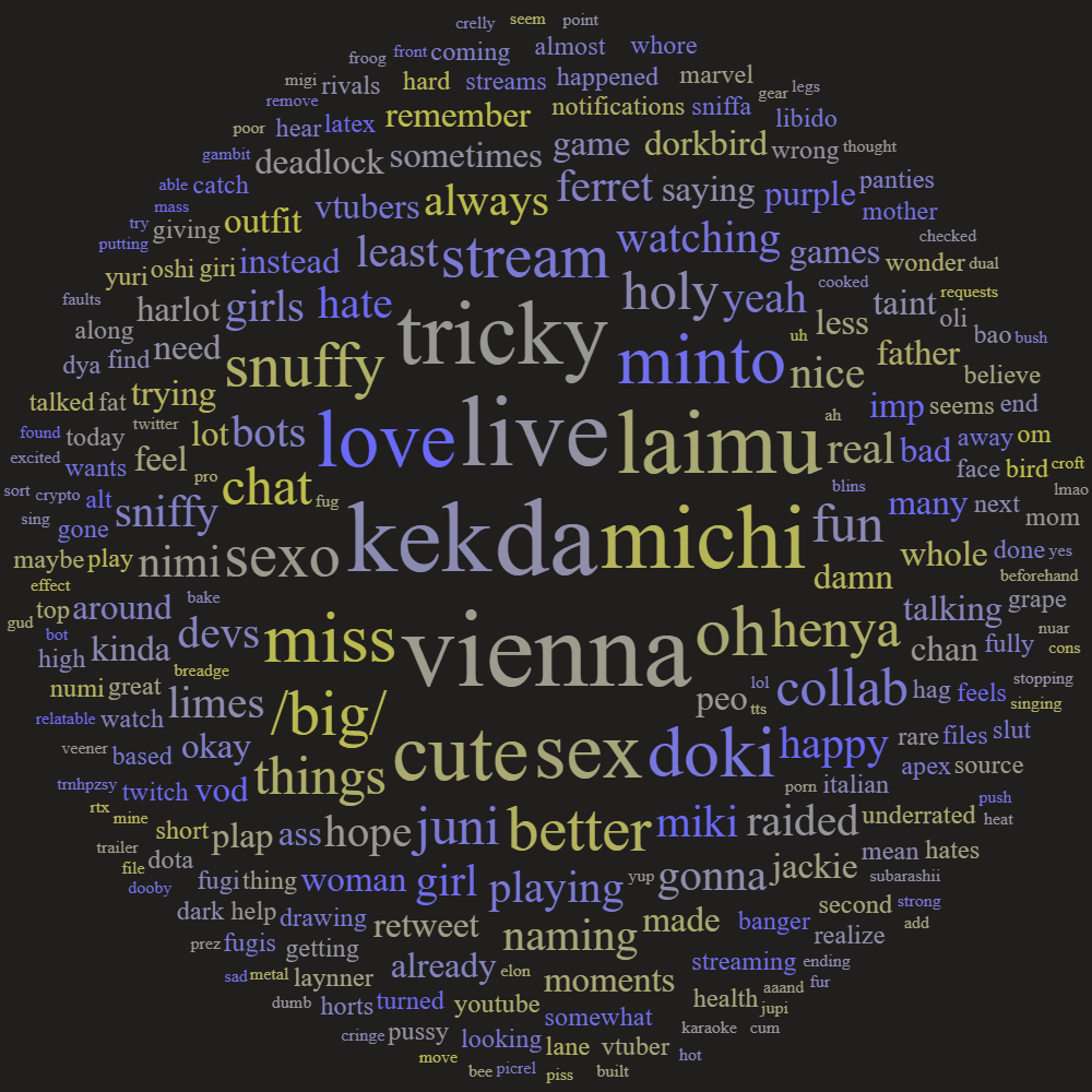>>109140881I don't really trust you with the way you initially come off but I can describe what she is like>brown mystery meat (affectionate), very sex, my eye-candy visual ASMR chuuba>great voice, makes a lot of good neuron tingling noises>can get very chaotic and loud, I think she's fun>huge pokeautist, made pokemon videos for years before vtubing>huge autist in general with a lot of autistic fixations on late 90s/early 2000s cartoon culture (she is early 30s)>unironically plays friendslop games by herself, she has hundreds upon hundreds of hours in solo phasmophobia>has an autistic fixation on sounds and especially harmonies that will catch her ear and then sidetrack her for extended periods of time as she plays with them>generally streams for long hours in late timeslots and is likely to jump between a bunch of different things in a stream>very earnest person who cares deeply about her friends and treasures her relationships to them>mentally ill (aren't they all)>probably has opinions that differ from youI think my earlier posts about her stream earlier in the thread are a good representation of what she's like. She also has a southern (she's Louisianan) spider mommy persona named Nouvelle who appears for ASMR like streams occasionally