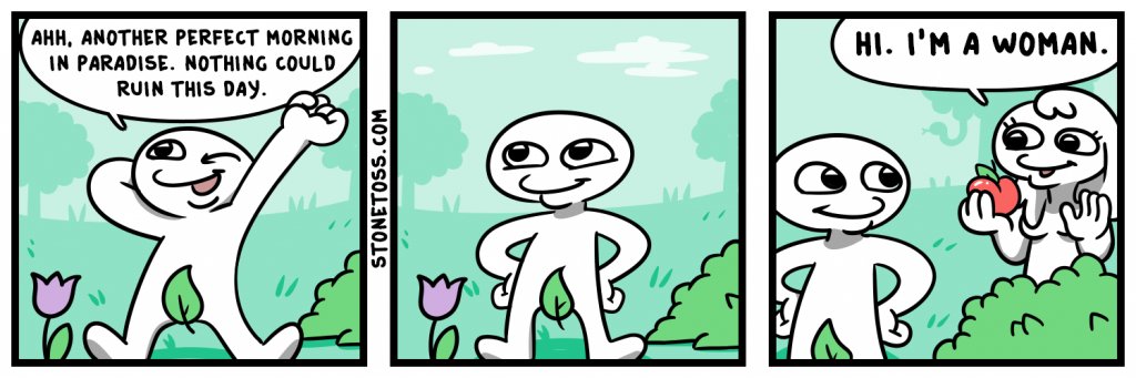 >>109138751If Adam and Eve did not yet have knowledge of good and evil then they wouldn't have known that disobeying god was bad. So I don't know why you're blaming the woman in this scenario when she wasn't the one that set them up to fail.