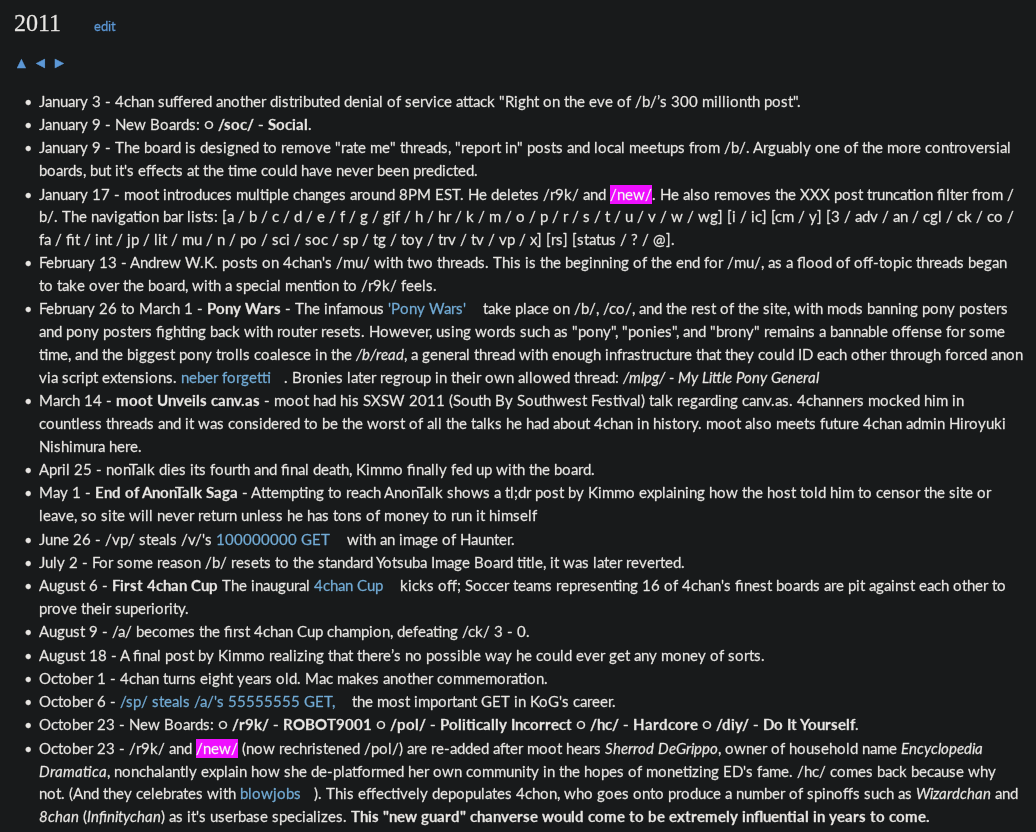>>109140486https://wiki.bibanon.org/4chan/History#2011