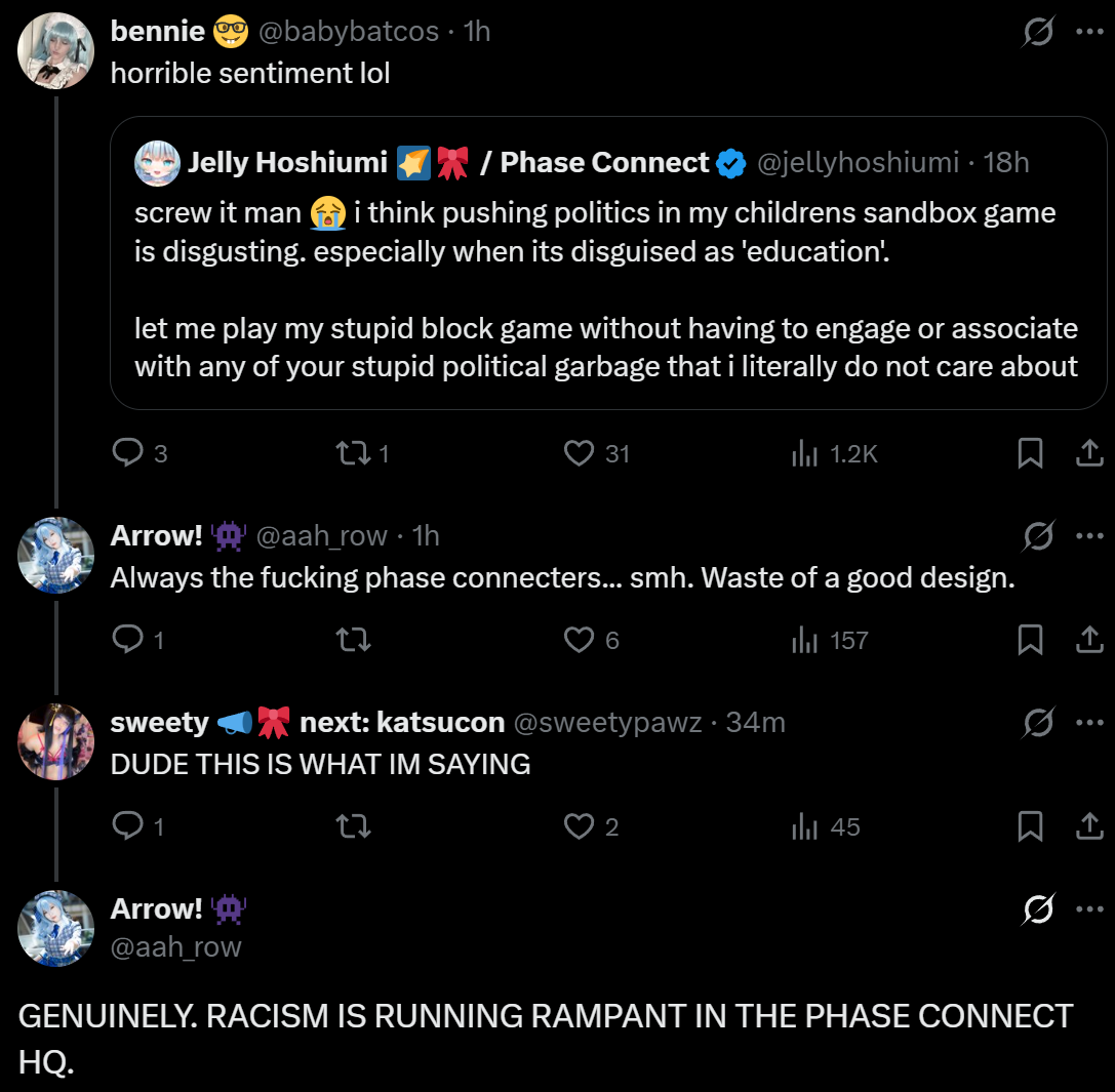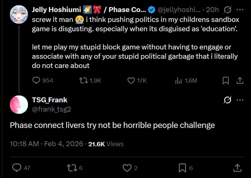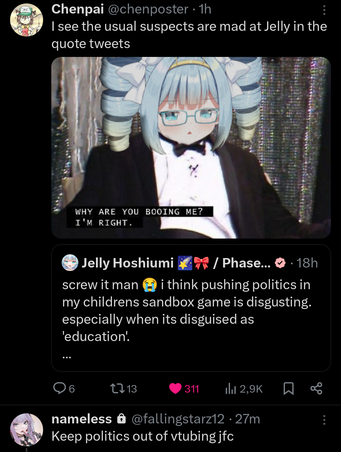 So liking phase is about being in denial about what side the aisle your oshi sits on?