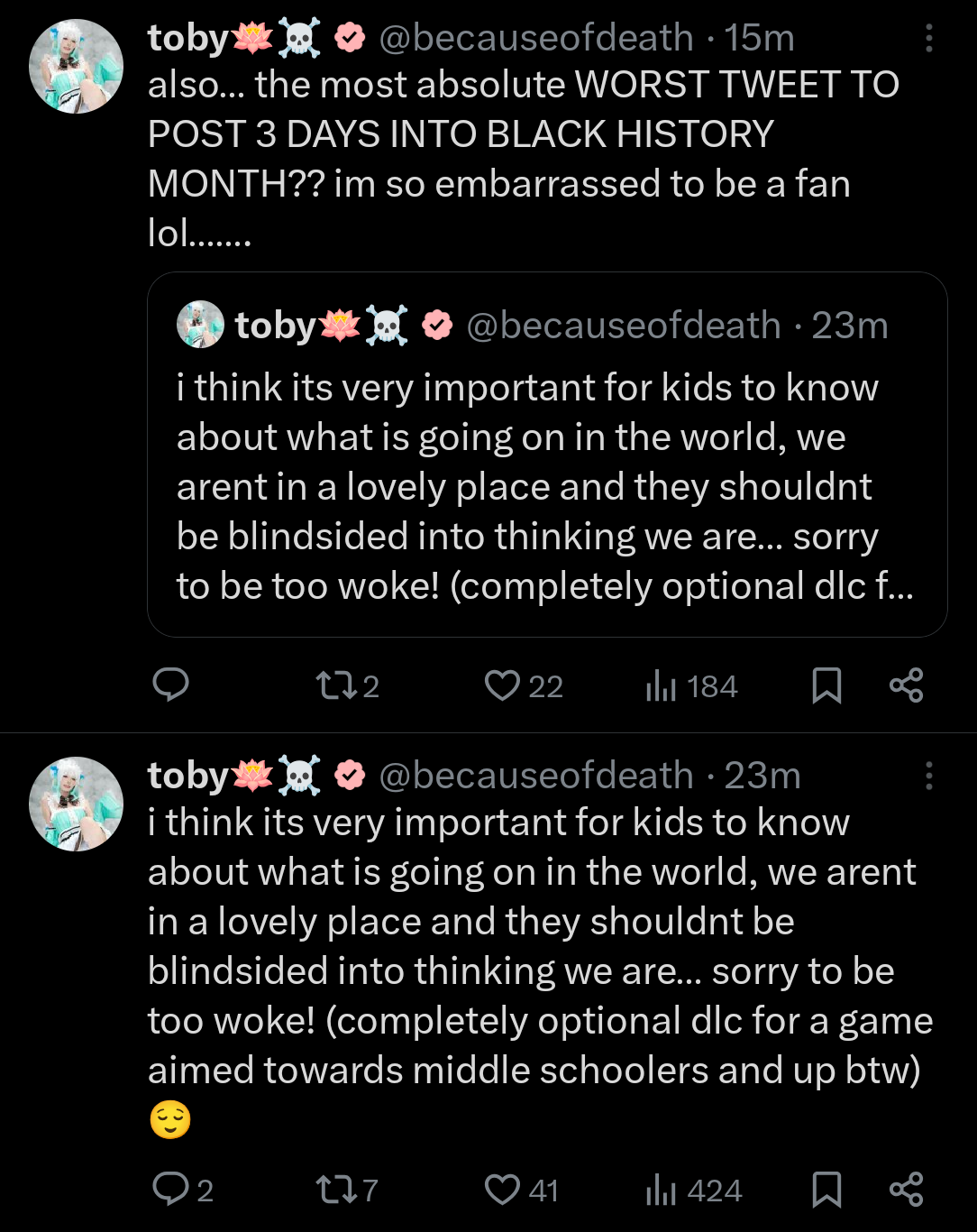 >>109135995>noviews>troon>criticizes jellymeanwhile>jelly owning retards on twitter>happy playing block game>views