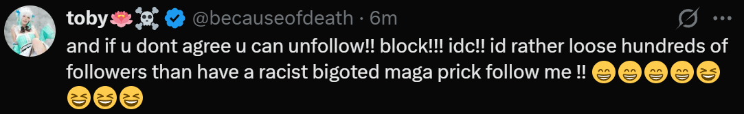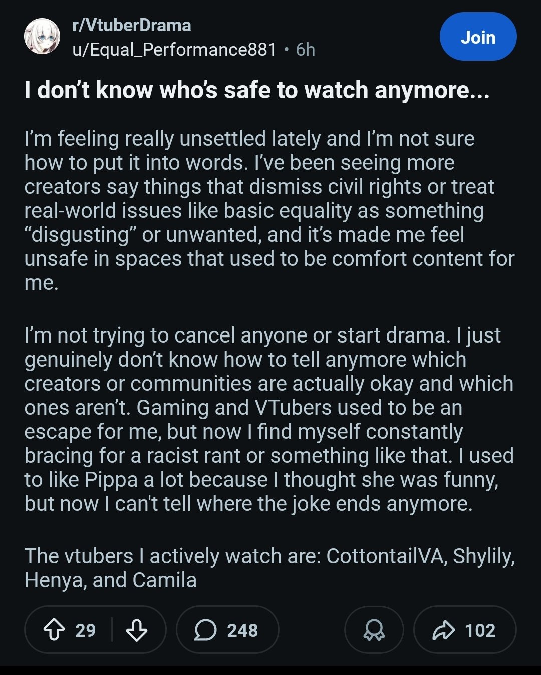 >>109136032>>109136151Nah, that's just woman code for dissing Jelly, since she can't call her out directly becuase people actually like Jelly, she is saying she has a kind and loving community, unlike racist Jelly