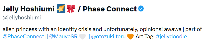 ▼ Phase Connect LinksOfficial Website: https://phase-connect.comOfficial Schedule: https://schedule.phase-connect.comOfficial Twitter: https://x.com/PhaseConnect | https://x.com/PhaseConnectJPOfficial Character References: https://rentry.org/pcgreferencesOfficial Twitch Archive Channels: https://rentry.org/pcgtwitcharchiveUnofficial Phase Connect Archives: https://rentry.org/pcgunofficialarchive––––––––––––––––––––––––––––––––––◆【Lia】https://x.com/rinkouashelia | https://youtube.com/RinkouAshelia | https://twitch.tv/asheliarinkou◆【Utatane Nasa】転寝ナサ (JP) https://x.com/UtataneNasa | https://youtube.com/UtataneNasa | https://twitch.tv/utatanenasa◆【Hakushika Iori】白鹿いおり (JP + EN) https://x.com/hakushikaiori | https://youtube.com/HakushikaIori | https://twitch.tv/iorihakushika◆【Fujikura Uruka】https://x.com/fujikurauruka | https://youtube.com/FujikuraUruka | https://twitch.tv/fujikurauruka◆【Shisui Michiru】紫翠みちる (JP) https://x.com/shisuimichiru | https://youtube.com/ShisuiMichiru | https://twitch.tv/michiru_shisui◆【Tenma Maemi】https://x.com/tenmamaemi | https://youtube.com/TenmaMaemi | https://twitch.tv/tenma◆【Pipkin Pippa】https://x.com/pipkinpippa | https://youtube.com/PipkinPippa | https://twitch.tv/pippa––––––––––––––––––––––––––––––––––◆【Kaneko Lumi】https://x.com/kaneko_lumi | https://youtube.com/KanekoLumi | https://twitch.tv/kanekolumi◆【Fuura Yuri】[Terminated] https://x.com/AmarisYuri | Archive: https://youtube.com/@TheNationalFuuraYuriArchive◆【Dizzy Dokuro】https://x.com/dizzydokuro | https://youtube.com/@dizzydokuro | https://twitch.tv/dizzydokuro◆【Jelly Hoshiumi】https://x.com/jellyhoshiumi | https://youtube.com/@jellyhoshiumi | https://twitch.tv/jellyhoshiumi◆【Ember Amane】https://x.com/emberamane | https://youtube.com/@EmberAmane | https://twitch.tv/emberamane◆【Clio Aite】https://x.com/ClioAite | https://youtube.com/@ClioAite | https://twitch.tv/clioaite◆【MariMari_en】https://x.com/MARIMARI_EN | https://youtube.com/@MARIMARI_EN | https://twitch.tv/marimari_en◆【Eepy Sleepy】https://x.com/EepySleepyCh | https://youtube.com/@EepySleepyCh | https://twitch.tv/EepySleepy––––––––––––––––––––––––––––––––––◆【Remilia Nephys】https://x.com/Remilia_Nephys | https://youtube.com/RemiliaNephys | https://twitch.tv/remilianephys◆【Chisaka Airi】https://x.com/ChisakaAiri | https://youtube.com/ChisakaAiri | https://twitch.tv/chisakaairi◆【Amanogawa Shiina】https://x.com/AmanogawaShiina | https://youtube.com/AmanogawaShiina | https://twitch.tv/amanogawashiina◆【Himemiya Rie】https://x.com/HimemiyaRie | https://youtube.com/HimemiyaRie | https://twitch.tv/himemiyarie◆【Erina Makina】https://x.com/ErinaMakina | https://youtube.com/ErinaMakina | https://twitch.tv/erinamakina◆【Komachi Panko】https://x.com/komachipanko | https://youtube.com/KomachiPanko | https://twitch.tv/komachipanko––––––––––––––––––––––––––––––––––◆【Runie Ruse】https://x.com/RunieRuse | https://youtube.com/@RunieRuse | https://twitch.tv/RunieRuse◆【Eimi Isami】https://x.com/eimiisami | https://youtube.com/@eimiisami | https://twitch.tv/eimiisami◆【Muu Muyu】https://x.com/Muu_Muyu | https://youtube.com/@MuuMuyu | https://twitch.tv/MuuMuyu◆【Hikanari Hina】https://x.com/HikanariHina | https://youtube.com/@HikanariHina | https://twitch.tv/HikanariHina◆【Saya Sairroxs】[Graduated] https://x.com/sayasairroxs | https://youtube.com/@sayasairroxs | https://twitch.tv/sayasairroxs––––––––––––––––––––––––––––––––––◆【Kannagi Loki】巫ロキ (JP) https://x.com/kannagiloki | https://youtube.com/@kannagiloki ◆【Kokoromo Memory】[Graduated] https://x.com/kokoromomemory | https://youtube.com/@kokoromomemory_ | https://twitch.tv/kokoromomemory◆【Gram Pico】倉夢ぴこ (JP) https://x.com/grampico_ | https://youtube.com/@grampico | https://twitch.tv/grampico◆【Ayase Yuu】絢世ユウ (JP) https://x.com/ayaseyuuu | https://youtube.com/@ayaseyuu | https://twitch.tv/ayaseyuu_◆【Kaminari Clara】歌美鳴クララ (EN + JP) https://x.com/kaminariclara_ | https://youtube.com/@kaminariclara | https://twitch.tv/kaminariclara––––––––––––––––––––––––––––––––––◆【Malice Evermore】https://x.com/MaliceEvermore | https://youtube.com/@maliceevermore | https://twitch.tv/maliceevermore◆【Nitya Nil】https://x.com/Nitya_Nil | https://youtube.com/@Nitya_Nil | https://twitch.tv/nitya_nil◆【Wilhelmina Frost】https://x.com/wilhelminafr0st | https://youtube.com/@wilhelminafrost | https://twitch.tv/wilhelminafrost◆【Bibi Biscuit】https://x.com/BibiBiscuitCh | https://youtube.com/@bibibiscuitch | https://twitch.tv/bibibiscuitch◆【Anya Nyabyss】https://x.com/AnyaNyabyss | https://youtube.com/@AnyaNyabyss | https://twitch.tv/anyanyabyss◆【Sinon Sinfonia】https://x.com/SinonSinfonia | https://youtube.com/@SinonSinfonia | https://twitch.tv/sinonsinfoniaPrevious Thread: >>109131441