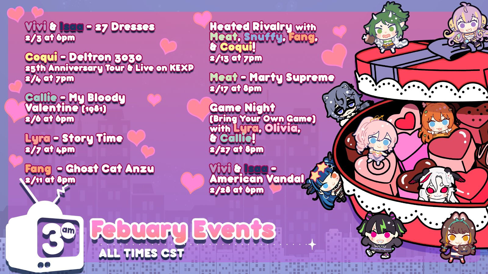 >>109140733For everybody asking, 3am was some sort of friend group that morphed into a loose corporation of sorts, kinda like V-Dere (Mozzumi Pichi) and Vershion (Australian vtubers). All members are indies, they just joined because theoretically there's some benefits to being in a corporation, like handling of merchandise, sponsorships, invitations to conventions, etc.They aren't exactly new, they've existed since 2024, at least.I knew of them because of Meat, who I just assumed was indie but then I saw she was in this 3am group.Olivia Monroe has collabed a lot with Lumi for 2 years. I think everybody considered Olivia as indie, and never paid too much attention to her affiliation as part of 3am.