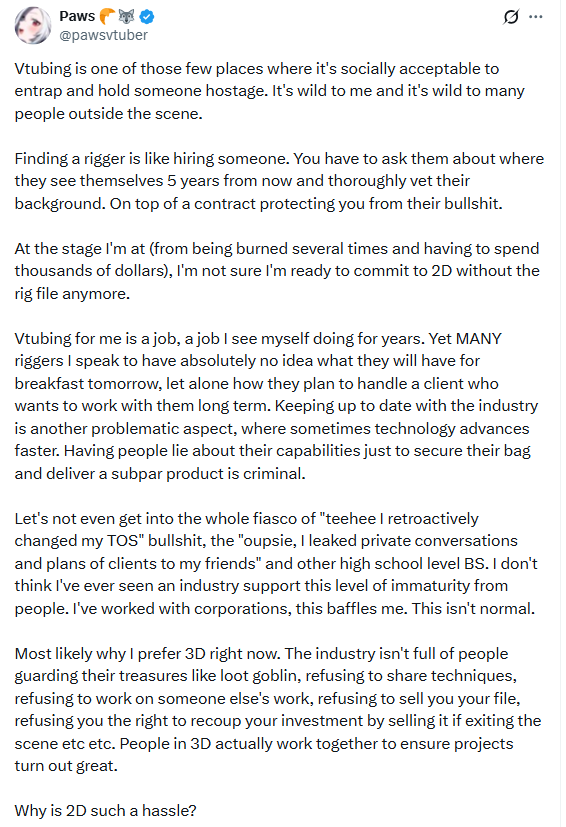 based understandable crashout. Many such cases of shit riggers and unprofessional workers in all of the support roles around vtubing