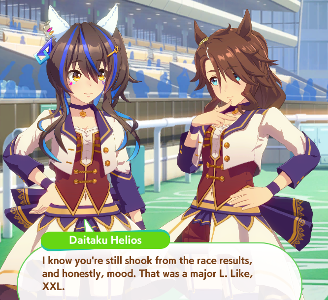 Uma Musume idol Vtubers>Win races>Run at over 50mph>Perform concerts constantly >Concerts are free and paid for by winning races>Enjoy carrots and bananasNormie corpo/indie Vtubers>Cannot win races>Barely run at all>Concerts are so rare they make a big deal about it and sell tickets>Eat doordash delivered by Bored Uma MusumeI've finally found real idols.