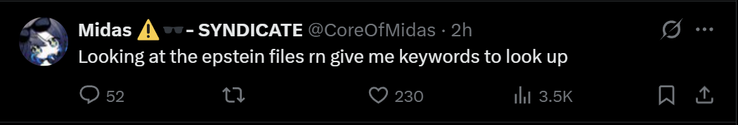 noticing a lot of liggers who were so pissy and dismissive of Sinder's 1000 page docky are absolutely obsessed with farming the Epstein files