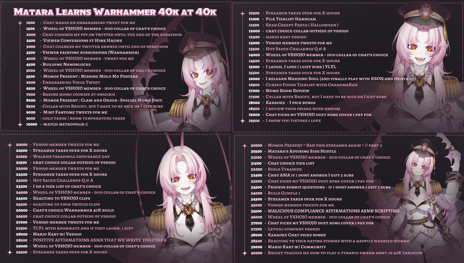 Lore Accurate Height EditionWelcome to /xvsj+/! A thread to discuss vtubers who were once associated with a hot pink company.Pick a stream and keep things comfy and civil by ignoring and especially reporting bait, and being excellent to each other./xvsj+/ includes:Amalee - https://www.twitch.tv/leeandlieFroot - https://www.twitch.tv/apricotGeega - https://www.twitch.tv/geegaHaruka - https://www.twitch.tv/harukakaribuHenya - https://www.twitch.tv/henyathegeniusHime - https://www.twitch.tv/hajimeKson - https://www.twitch.tv/ksonsouchouKuro - https://www.twitch.tv/k9kuroMata - https://www.twitch.tv/matarakanMel - https://www.twitch.tv/projektmelodyMichi - https://www.twitch.tv/michimochieveeMomo - https://www.twitch.tv/momoMouse - https://www.twitch.tv/ironmouseNazuna - https://www.twitch.tv/amemiyanazunaNyan - https://www.twitch.tv/nyannersSilver - https://www.twitch.tv/silvervaleVei - https://www.twitch.tv/veiZen - https://www.twitch.tv/zentreyaNOVAHestia - https://www.twitch.tv/hestiahappinessHotaru - https://www.twitch.tv/akatsukidhotaruNagi - https://www.twitch.tv/NagIsekaiedPeke - https://www.twitch.tv/pekeispeakThe BeastiezBeri - https://www.twitch.tv/beribugKairyu - https://www.twitch.tv/kairyucrocodilePia - https://www.twitch.tv/piapiufoTori - https://www.twitch.tv/toriorianeDensetsu.EXEFeebee - https://www.youtube.com/@feebeechanchibiMint - https://www.youtube.com/@mintfantomeVicky - https://www.youtube.com/@vickyroman_idolRelated:/999/ + /総長/ + /nova/ + /voms/ for Japanese talents once associated with a hot pink company/lig/ and /big/ for more generalized + and friends discussionPrevious Thread: >>109128186
