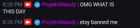 Mel's bad luck continues to stack. Now she's been banned from Etsy. Another notch on her belt for her I guess.