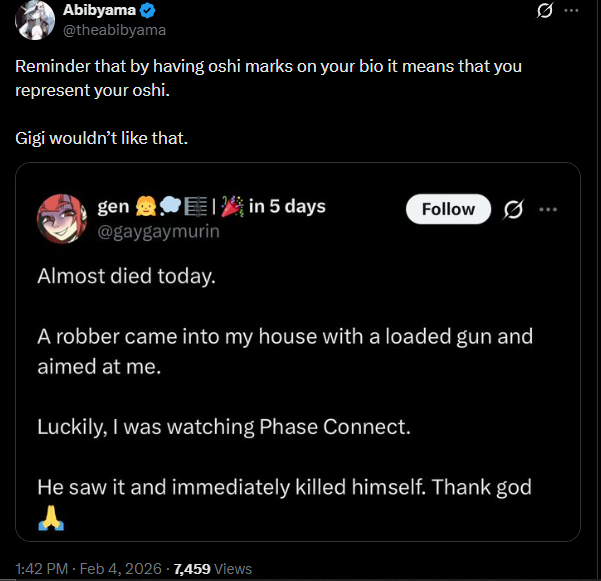 >Gigi wouldn't like it if you laugh at a piece of shit company that represents the exact opposite of Hololive>She doesn't even have any friends in itThe self importance of Phaseniggers is astonishing