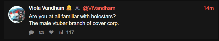 >>109154122That's a vshojo shill pretending to be a disgruntled holofan. Go back in his timeline far enough and it's nothing but Froot (yes fucking FROOT) glaze