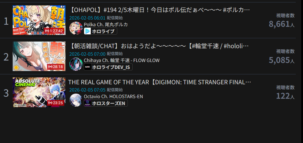 *GENERAL NUMBERFAG SITES*>https://playboard.co/en/>http://ikioi-ranking.com/>https://vrabi.net/>https://live-ranking.userlocal.jp/vtuber-rankingHololive sites>https://www.hololyzer.net/youtube/index.html>https://trackholo.live/en/>https://holo-spotify-stats.jirikunes.eu/Twitch>https://sullygnome.com/>https://twitchtracker.com/>https://stats.roki.sh/>https://streamscharts.com/