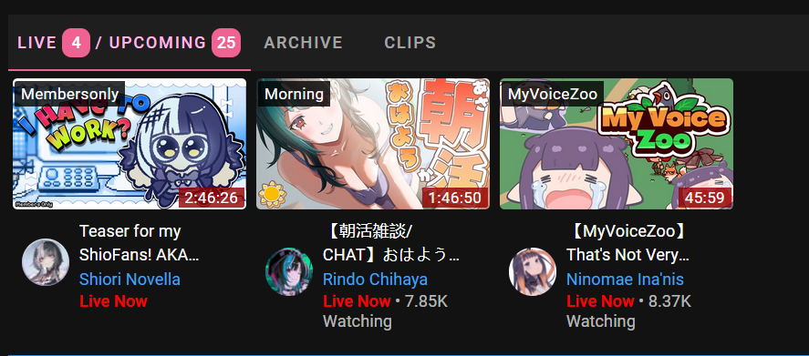 >>109153158>16,951: Raden (Hololive)Huh. Raden didn't have single guest from Hololive in her 3D birthday?