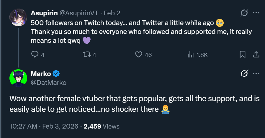 https://youtu.be/W3z1UE8HIi0?si=_buHm1c54WzlpnqOSomehow RussianBadger's black friend with a Vtuber avatar whose friends with Zentreya has better tact when it comes to respecting Idol culture compared to beggers.
