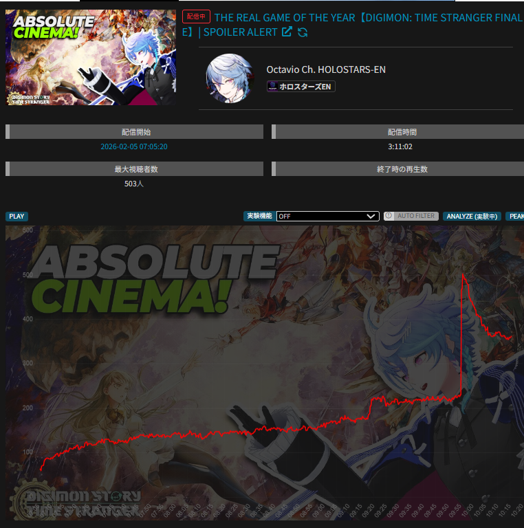 >>109153266FEB 2026 EN SILVER2/1 - Elizabeth - Unarchived Karaoke: 9,5692/2 - Bijou - Animal Crossing New Horizons: 8,8972/3 - Nimi - Minecraft: 10,1892/4 - Baelz - Holo vs Robo: 10,646PER COMPANY3x: Hololive English1x: IndiePER STREAMER1x: Elizabeth, Bijou, Baelz, Nimi