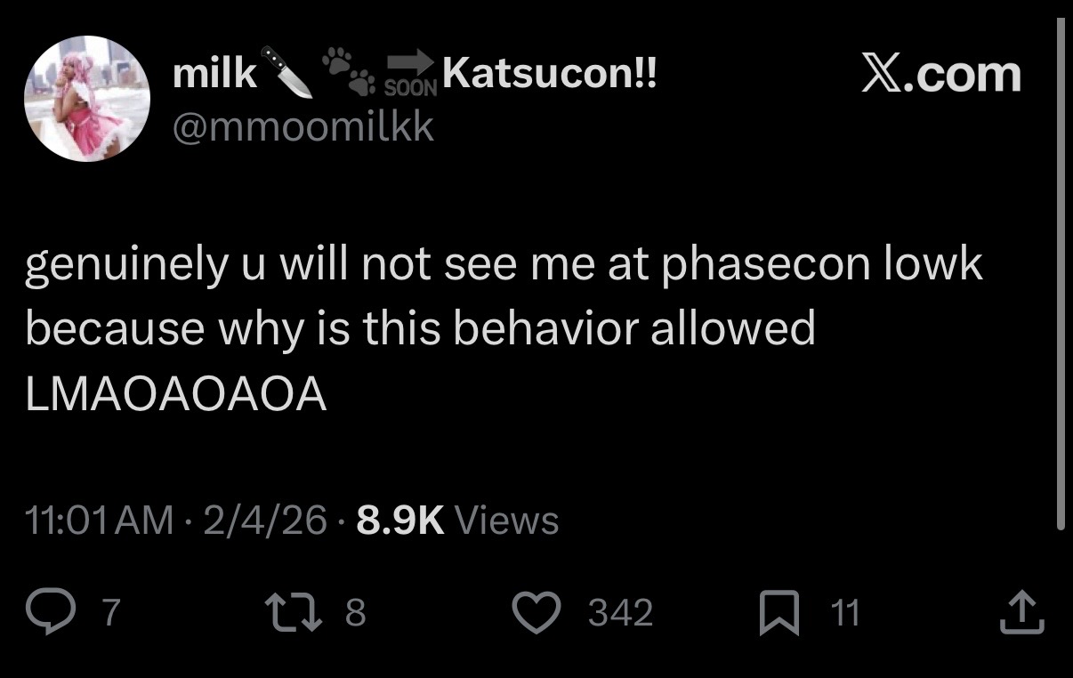 >One of Phase Connect's cosplayer booth babes will not cosplay for Phase anymore after what Jelly tweetedOH SHIT
