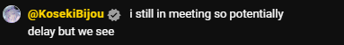 https://x.com/kosekibijou/status/2019231881187987846>When you hold back a coughing fit so hard cuz you don’t wanna bother the taxi driver that you start crying but then they notice you crying in the backseat anyway and ask if you’re okay so there was no point cuz they noticed you anyway good morning it’s barely 11am I’m Biboo…This poor antisocial little dork in a foreign country.