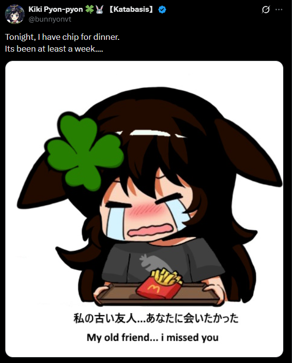 Cuddle? EditionThis thread is to discuss /vt/‘s very own Kiki.>LATEST STREAMhttps://www.youtube.com/watch?v=9CP1a-tnmJ4>Who is Kiki?Kiyomi Pyon-Pyon, or Kiki for short is an adorable autistic Aussie chuuba. She's a wicked bright, and super sweet girl with a passion for animals and her champyons!https://youtu.be/1vjStYtGkJshttps://youtu.be/PyeTpOgLWiY>Carrdhttps://kikipyonpyon.carrd.co/>Kiki Lore and Intro Videoshttps://youtu.be/W-bLrgrXdSghttps://youtu.be/eweZ2EDK7v4https://youtu.be/wxL2YkOhaMs>NEWEST KIKI CLIPShttps://youtu.be/2sd-aYoaOtghttps://youtu.be/YN_1OOVO7oohttps://youtu.be/EOkMNgZTzbE>KATABASIS WEBSITEhttps://katabasis.moe/>Merch (*NEW: Katabasis Merch, Soap, Butt Mousepad, Keychains, Stickers,* Deskmat, Magnets, Coasters, JP Snack Pack, Tapestry, Standee, Daki)https://memebars.com/collections/the-katabasis-collectionhttps://shop.moso.moe/kiki-pyon-pyon/https://weebe.net/shop/character-goods/keychains/kiki-pyon-pyon-baking-time-acrylic-keychain/ code: KATABASIS5 (5% off)https://www.capippalisttradeguild.com/product/13x19-print-kiki-feet-rishartist-/264https://www.capippalisttradeguild.com/product/9in-dakimakura-keychain-kiki-pyonpyon/263https://diipoo.com/shop/kiki-daki/>Danboorus, Aggie, & /i/ thread (Art/Fan Content)https://pyon.websitehttps://booru.rabbalabs.com/Previous Aggies: https://pyon.website/pools/1>>>/i/723670>Katabasis Covers:https://youtu.be/JB6GhjWT4lshttps://www.youtube.com/watch?v=BgzyBpO8Oukhttps://www.youtube.com/watch?v=vu7a6PjiSpohttps://www.youtube.com/watch?v=62Z2a4f6k7k>Kiki's Covers and Songshttps://youtu.be/xwHH28JFrnUhttps://youtu.be/2tPTie7UmyUhttps://youtu.be/Zpdu7yFk1tAhttps://youtu.be/24K-LkEhLqkhttps://youtu.be/8v9OUHzxy_ohttps://youtu.be/7JSSOnss85Yhttps://youtu.be/FzMJ0LWTUYQhttps://youtu.be/TXi-SDZJEwEhttps://youtu.be/XLKYnOALHac>ASMR Collection, Voicepacks & AI LoRAshttps://rentry.org/7uqu8mvq>/pyon/ Cytube (Community Watchalongs):https://stream.rabbalabs.com/r/pyon>Kiki Notifications RSS feed w/ instructionshttps://rabbalabs.com/rss/feed.xmlhttps://pastebin.com/nGsaGEZh>Misc. Rabbalabs links (timestamp tagger, VOD search, /pyon/ archive)https://rabbalabs.com/tagger/https://rabbalabs.com/vods/https://rabbalabs.com/pyondex/>/pyon/craft serverhttps://rentry.org/pyoncraftguide>Champy Creative CornerChampy Creations playlist: https://www.youtube.com/playlist?list=PLuUil1VBO4o7PpCUPwTKvj_4l7UBE8toPMusic (Kikikore): https://www.youtube.com/playlist?list=PLuUil1VBO4o5iNrFvZm8eMQGtj9xnacjMKiki Ambient Album: https://drive.google.com/file/d/18C-GvhOs5uG90xx4Et-yIF2QJHSUV0Eg/viewAnimations: https://www.youtube.com/playlist?list=PLuUil1VBO4o4TyrbqW87D2aygzbUMLMVsKiki Koikatsu Archive: https://mega.nz/folder/Bx4XXYTb#o7L7D5bg4XverGHQ03upkQKiki Noises Sound Effects Library: https://mega.nz/folder/LnRjWaoL#UL6z0KJcBwRPBapmRdAg2QKikinese: https://files.catbox.moe/yv1xre.pdfKiki Doom 2 WAD: https://files.catbox.moe/pd9lr9.zip/pyon/ Worms game: https://mega.nz/folder/46VjwSRS#DihAVX2GfbOvMiY0X_1nEASuper Champ Bros (SMB rom hack): https://files.catbox.moe/0tbbps.zipAoE2 Kiki civ mod: https://www.ageofempires.com/mods/details/316335/https://www.ageofempires.com/mods/details/316395/Kiki DoW Banners/Badges: https://files.catbox.moe/n6qe1d.zip/pyon/ Tetris: https://seburd.itch.io/tetrispyon>Related places>>>/vt//freak/ >>>/vt//vrt/>Last thread>>109100359