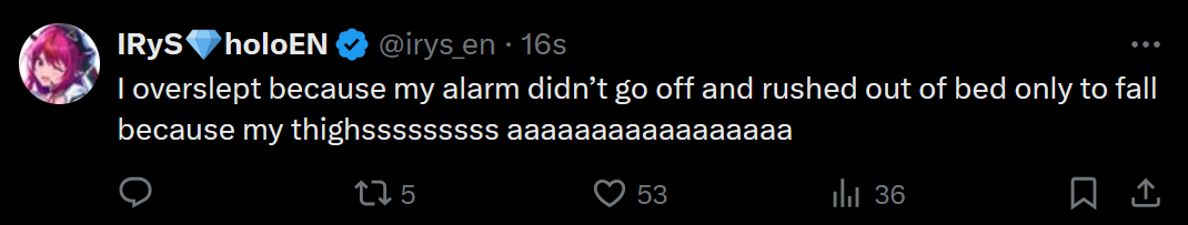 >Bae overslept because her alarm didn't go off>IRyS overslept because her alarm didn't go offhttps://x.com/irys_en/status/2019631757843394579