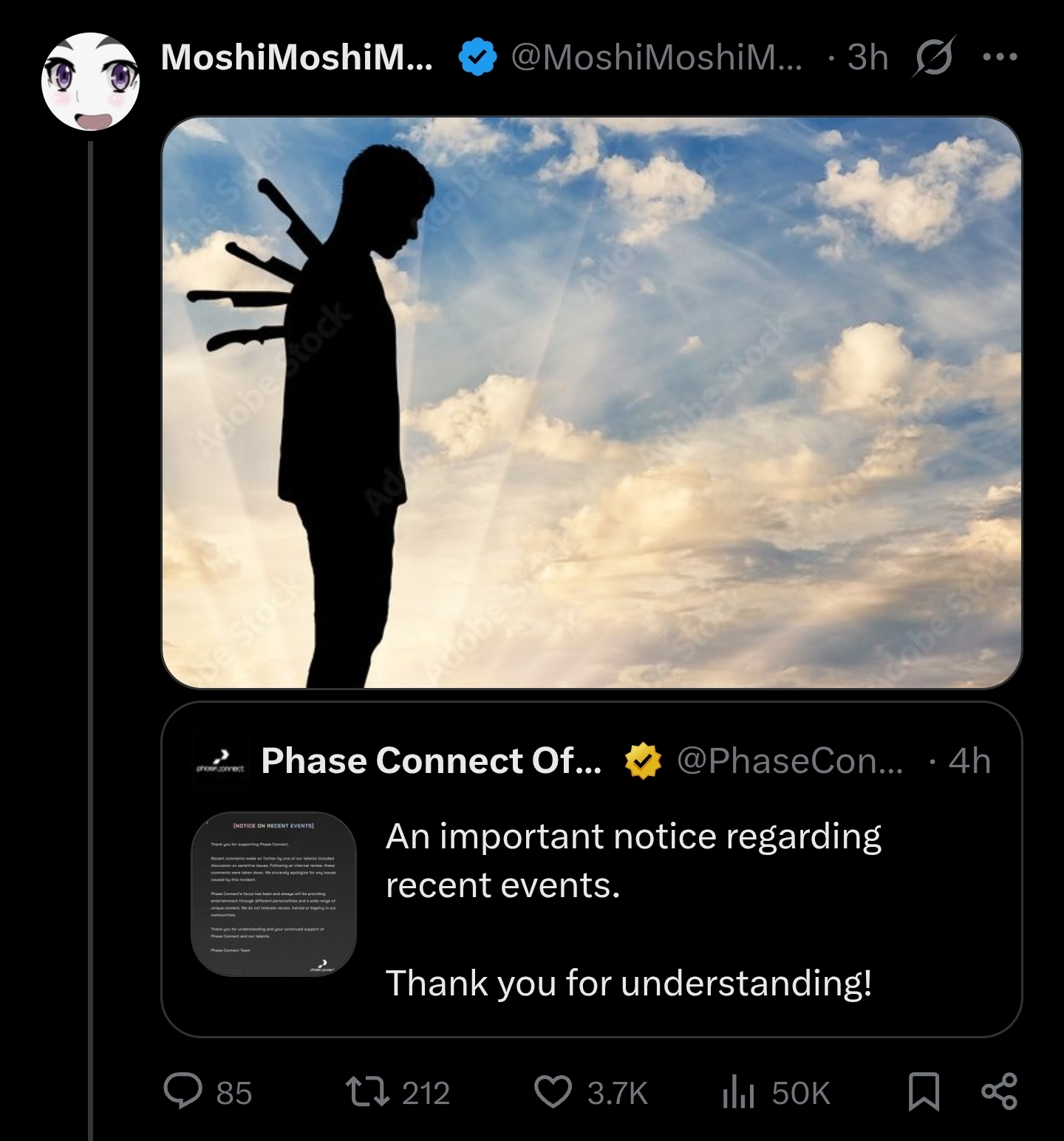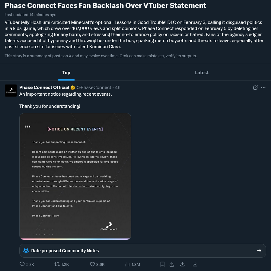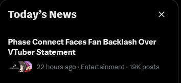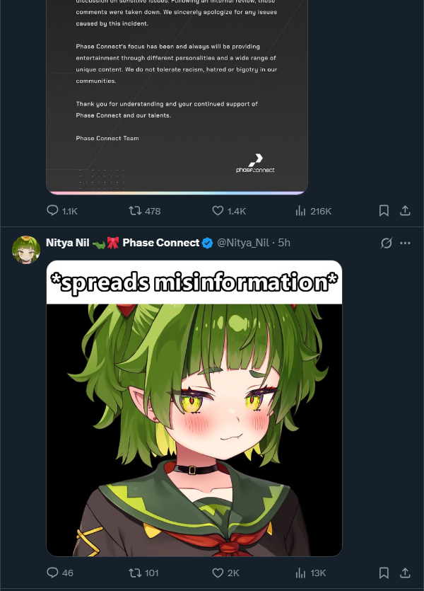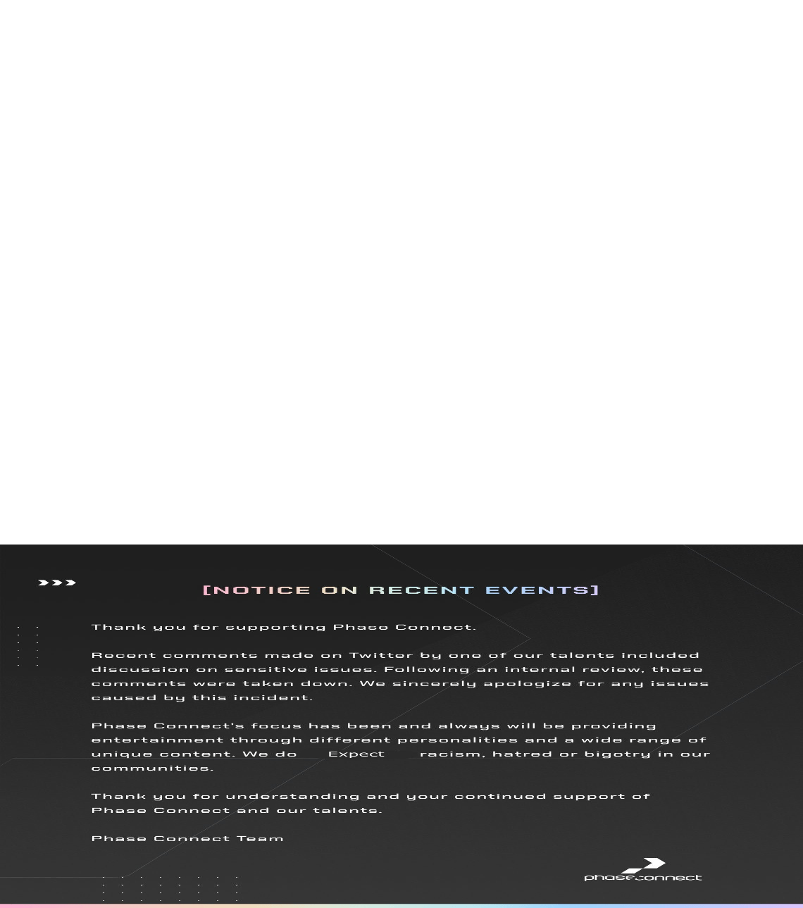tourist here, congrats on your first vtuber org controversy, it was bound to happen eventually...how are you guys holding up? i like the phase chuubas, for the record