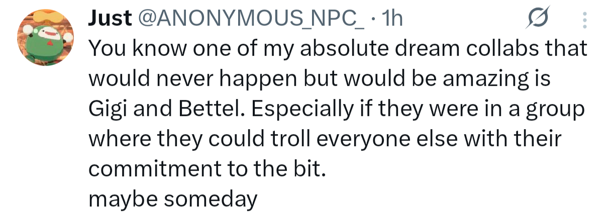 I'm glad the one eop content creator Hololive seems to actually associate and talk with sometimes is the guy whose a drummer for a church worship band.