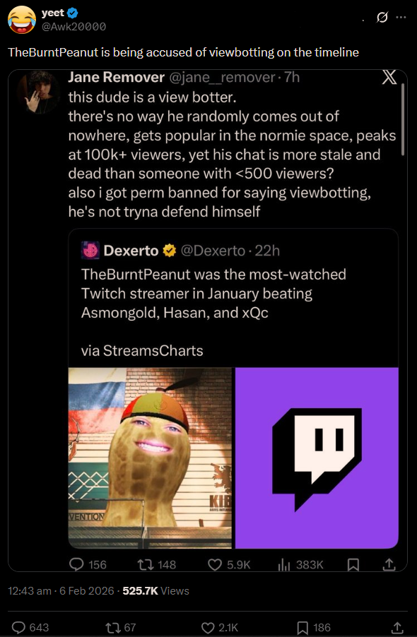 This is why everyone is just switching over to TheBurntPeanut>no drama>no political BS>actually entertaining and funny>can mog every vtuber without bots or raids>no thirst trap e-whore shit>collabs frequentlyhttps://www.youtube.com/watch?v=KP_AAbE1AKU